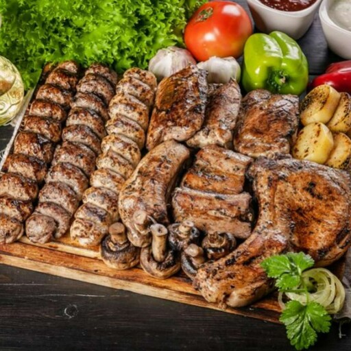 Сет XL для большой компании — сытный набор горячих блюд, который порадует разнообразием мясных деликатесов и гарниров! В наборе: сочная свиная шея 2п, рёбра 2п, корейка 2п, куриные крылья 2п, филе 2п, баранья корейка и мякоть, говядина люля 2п, а также грибы 2п, картофель 2п и лепёшки с томатным соусом 3. Идеальный выбор для весёлой компании и насыщенного застолья!